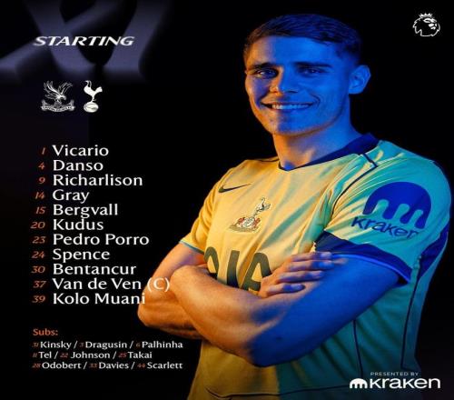 熱刺首發:1-維卡里奧、24-斯彭斯、4-丹索、37-范德芬、23-波羅、14-格雷、30-本坦庫爾、15-貝里瓦爾、20-庫杜斯、9-里沙利松、39-穆阿尼