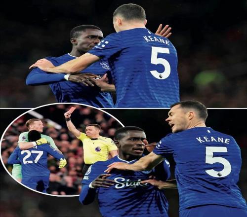 20年后,相似的場(chǎng)面竟然重現(xiàn)英超——本賽季英超第12輪,曼聯(lián)主場(chǎng)對(duì)陣埃弗頓。巧合的是,對(duì)陣雙方的實(shí)時(shí)排名和20年前一樣也是第10和第11位。比賽開(kāi)場(chǎng)才13分鐘,埃弗頓球員伊德里薩·蓋伊和隊(duì)友邁克爾·基恩因傳球爆發(fā)矛盾,二人迅速?gòu)目诮巧仙林w沖突,前者當(dāng)眾給了隊(duì)友一巴掌。位于附近的皮克福德趕忙上前拉架,但蓋伊仍怒氣未消反應(yīng)激烈,最終被紅牌逐出場(chǎng)外。這次內(nèi)訌雖不及20年前那次互毆“火爆”,但在英超比賽進(jìn)行當(dāng)中出現(xiàn)如此場(chǎng)面也是頗為罕見(jiàn)。畢竟這可是面向全世界的現(xiàn)場(chǎng)直播啊。然而,盡管埃弗頓早早少打一人,卻仍憑借霍爾的進(jìn)球最終1比0戰(zhàn)勝了曼聯(lián)隊(duì)。