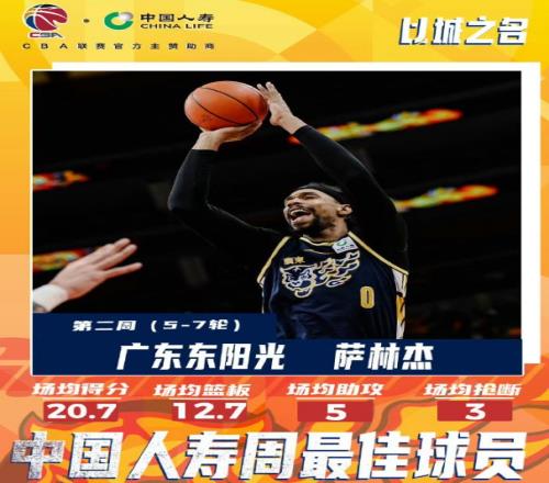 薩林杰第二周場(chǎng)均20.7分12.7籃板5助攻3搶斷,成為周最佳球員。
