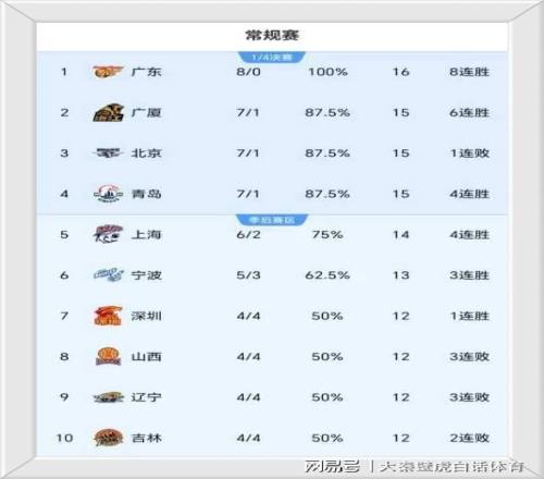 ①、豪取8連勝的廣東男籃一枝獨秀,反超上海隊登上榜首寶座;