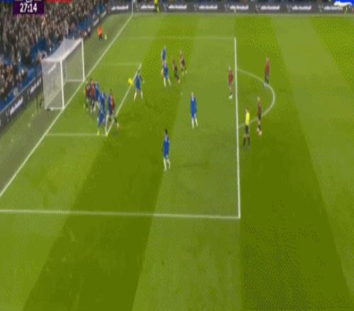 丟球后的切爾西迅速壓上,比賽節奏明顯加快。第10分鐘,埃斯特旺右路強行突破殺入禁區,在與塞門約的身體對抗中倒地,主裁判起初沒有任何表示,這一判罰立刻引發切爾西球員和球迷的強烈不滿。VAR隨后介入,主裁親自到場邊觀看回放后改判點球,切爾西迎來扳平比分的機會。