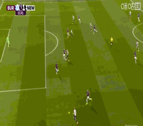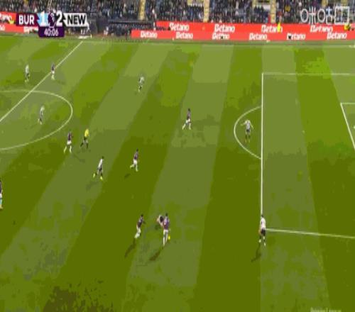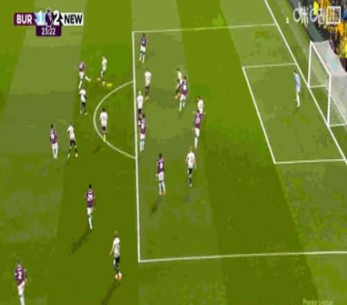 第90+2分鐘,伯恩利后場失誤,吉馬良斯吊射破門,紐卡3-1