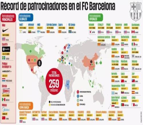 目前,巴塞羅那足球俱樂部在全球范圍內(nèi)擁有接近50家贊助商,合作伙伴遍布五大洲,展現(xiàn)出在地理分布上持續(xù)且均衡的國(guó)際化擴(kuò)張。美洲市場(chǎng)中,合作伙伴包括來自墨西哥的賓堡、加拿大的豐業(yè)銀行以及委內(nèi)瑞拉的拉皮,美國(guó)則集中了多達(dá)12家不同贊助商,成為俱樂部在該領(lǐng)域的關(guān)鍵市場(chǎng)之一。