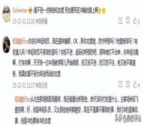 你說你年輕球員,現在是陣痛期,OK,那你態(tài)度呢,防守積極嗎?搶籃板球嗎?有投籃兒嗎?年輕球員不練球的是嗎?你投不進,起碼你積極防吧,那陣地打不出來,你年輕你跑啊,打快攻啊,天天球一過半場就停那兒開始指揮,投又投不進,防又防不住,搶又搶不著籃板,我真的看不到為球迷而戰(zhàn)的態(tài)度。