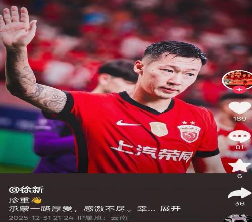 31日晚,徐新在個人社交賬號上發文,告別效力了4個賽季的上海海港。徐新寫道:“承蒙一路厚愛,感激不盡。幸與諸君同舟,此間風景,終生難忘。明日各有征程,唯愿珍重,且待佳音。江湖不大,我們后會有期。”