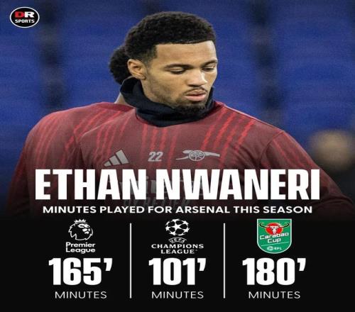 賽季至今,恩瓦內里僅為槍手出場11次,其中3次首發,打入了1粒進球。相比上賽季的37場出場,首發16次,恩瓦內里的出場場次下降明顯。事實上,這位才華橫溢的18歲小將尚未在英超聯賽中先發出場。盡管已有6次登場,幾乎全部以替補中場的身份亮相。