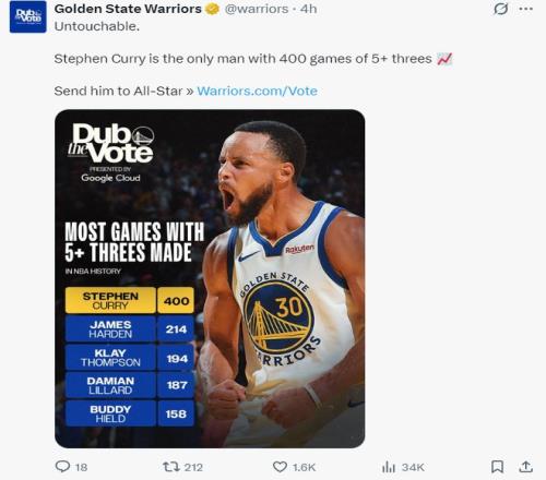 此役37歲的老萌神又迎來了一個全新的里程碑,他成為NBA歷史上第一位達成400場5+三分球的球員斷崖第一,第二的哈登只有214次,這就是三分之神的恐怖實力。