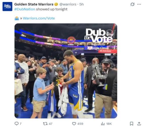 這場比賽斯蒂芬在父親戴爾的母隊獲得了巨大的支持聲,就如同庫里在布魯克林被高呼MVP一樣,比賽結束后很多的球迷都來圍繞著萌神,37歲的庫里為多位小球迷都進行了簽名。