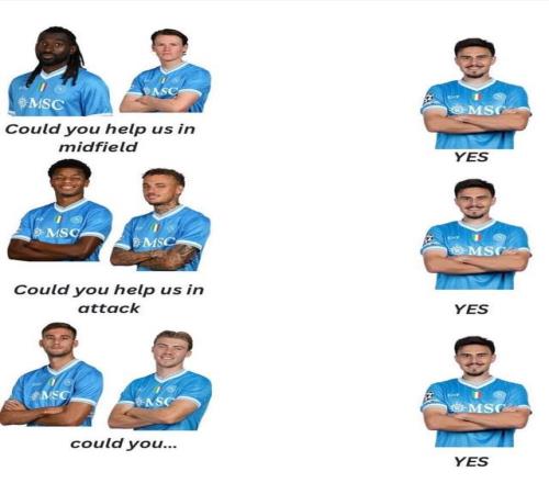對于自己萬金油的屬性,埃爾馬斯也在社交媒體上發了一張梗圖進行了自嘲,這張梗圖的內容是安古伊薩和麥克托米奈提問:“你能在中場幫助我們嗎?”埃爾馬斯回復道:“可以。”隨后內雷斯和諾阿-朗提問:“你能在進攻端幫助我們嗎?”埃爾馬斯繼續說道:“可以。”最后洛倫佐-盧卡和霍伊倫也提問:“你能......”沒等他們問完,埃爾馬斯搶答道:“可以。”