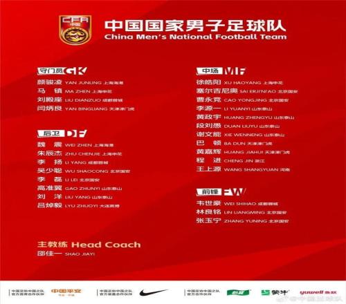 鋒線包括了韋世豪( 成都蓉城)、張玉寧(北京國安)、林良銘(北京國安)。對比久爾杰維奇在東亞杯時征召的隊員,整體上的人員出入有13人之多。不過,大部分的老人回歸入選也是讓平均年齡達到了28.5歲,確實有點老。